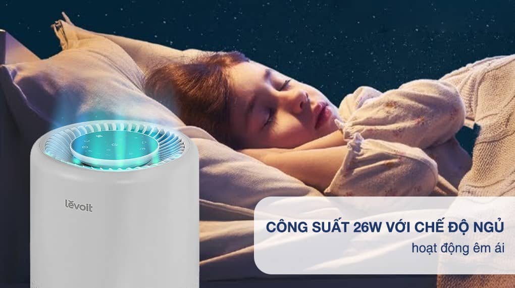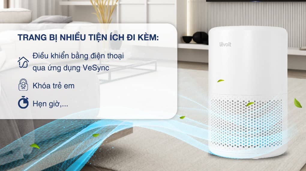 - Máy lọc không khí Levoit sở hữu công nghệ Super quiet (QuietKEAP) và công nghệ Air Turbo (VortexAir) giúp máy lọc không khí hiệu quả, hạn chế tiếng ồn.