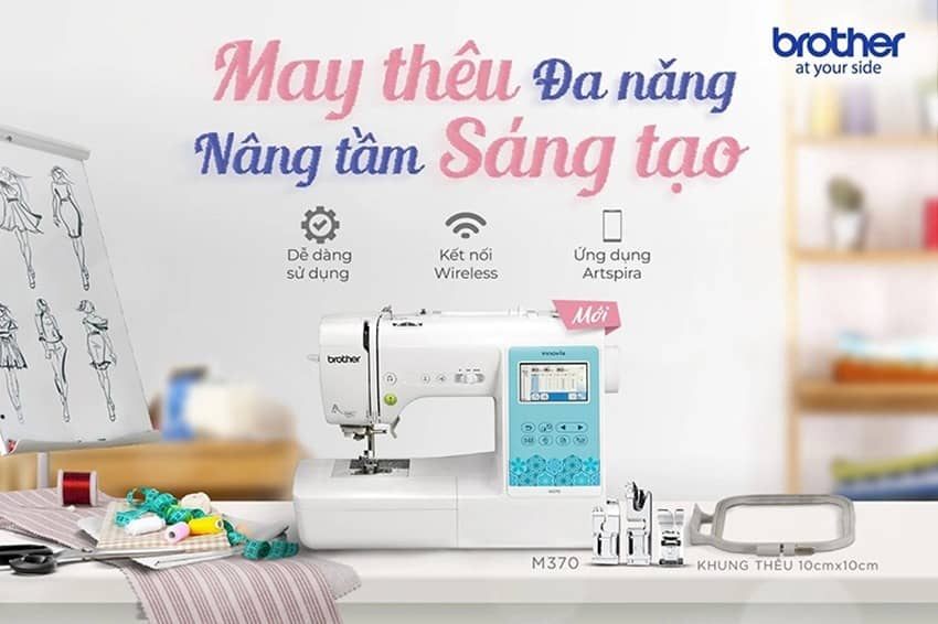 Máy may điện tử Brother M370 Là sự kết hợp hoàn hảo giữa tính năng máy may và máy thêu vi tính. Có giá thành rẻ, chạy ổn định, hình thêu chất lượng, phù hợp thêu logo áo bóng đá, thêu logo áo thể thao…