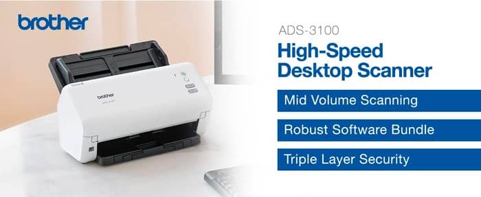 Luôn linh hoạt, đáng tin cậy, nhanh nhạy và an toàn, Máy quét Brother ADS-3100 là chiếc máy quét nhỏ giúp giải quyết công việc lớn từ việc sắp xếp và ngăn nắp.