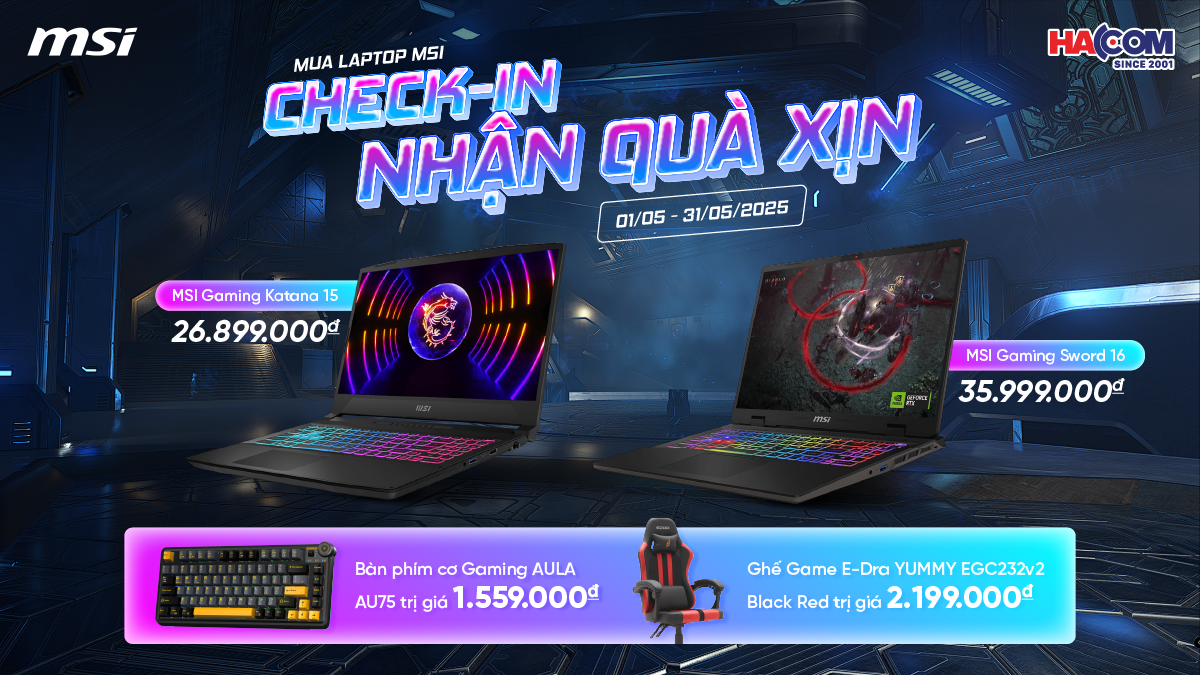 Mua Laptop MSI nhận ngay một trong hai phần quà giá trị từ HACOM.