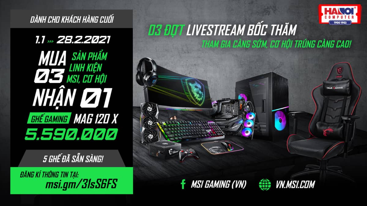 Mua linh kiện MSI trúng ghế Gaming hàng hiệu – Dành riêng cho khách mua hàng tại HANOICOMPUTER