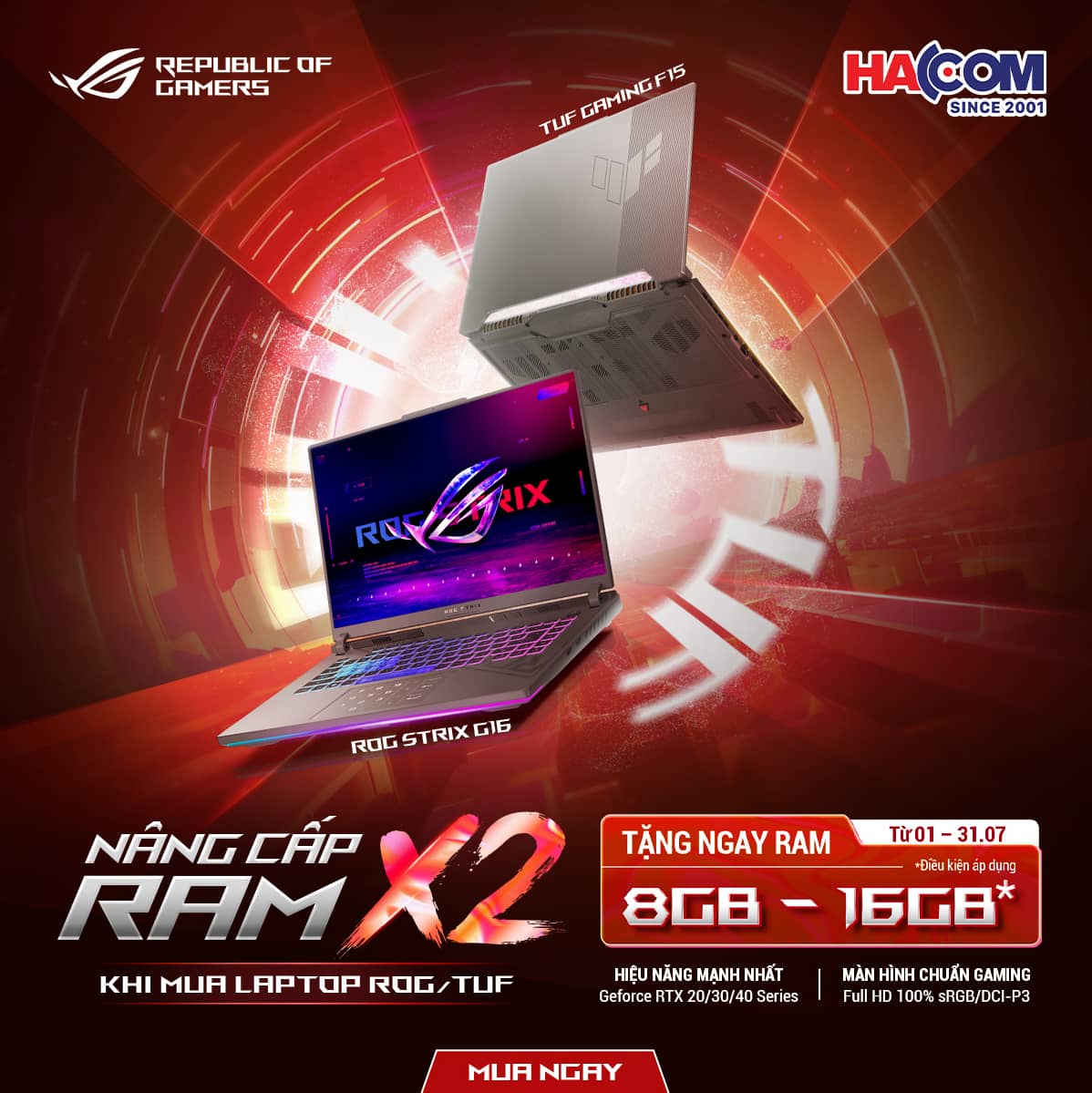 Nâng cấp RAM x2 khi mua Laptop TUF tại HACOM