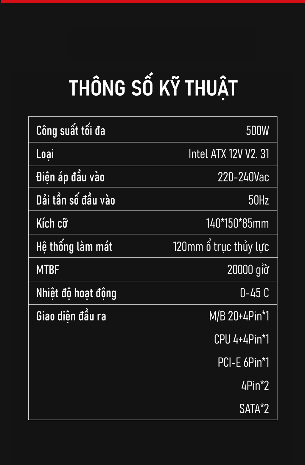 AIGO VK 550 là nguồn máy tính có công suất 500w phù hợp cho các loại cấu hình máy tính phổ thông