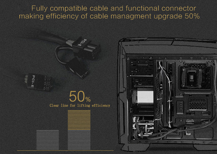 4 + 4 pin - 620 mm (cáp nguồn phụ cho Mainboard) x2 6 + 2 pin - 650 mm (cáp nguồn phụ cho VGA) x2 SATA - 950 mm (cáp cấp nguồn cho 4x SATA) x2 IDE - 950 mm ( cáp cấp nguồn cho 3x IDE + 1x FDD ) |