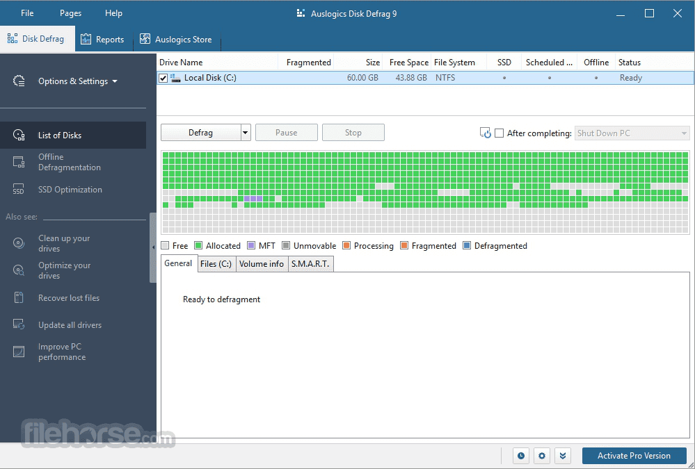 Sau khi cài đặt thành công, phần mềm sẽ tiến hành phân tích ổ đĩa cứng và sau đó phát hiện cũng như khắc phục những file có vấn đề. Từ đó có thể tối ưu hệ thống Windows, cải thiện tình trạng máy tính chạy ì ạch. Trong quá trình tiến hành chống phân mảnh ổ đĩa, người dùng có thể thực hiện theo một lịch trình đã được lên lịch sẵn. Hoặc lựa chọn tự động tắt máy sau khi chống phân mảnh kết thúc. Như vậy, chúng ta sẽ tiết kiệm thời gian, không phải ngồi chờ hàng tiếng đống hồ với những ổ đĩa có dung lượng lớn khi tiến hành chống phân mảnh.