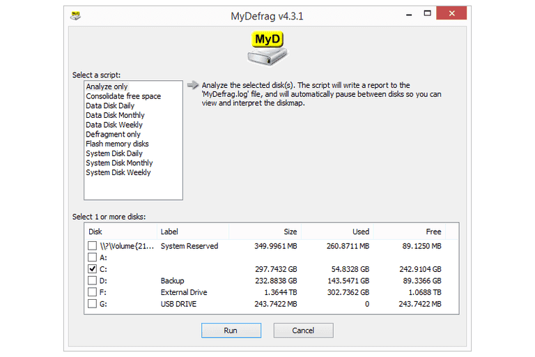 MyDefrag sở hữu tính năng chống phân mảnh ổ đĩa cần thiết, với dung lượng nhẹ không chiếm quá nhiều tài nguyên trong hệ thống.