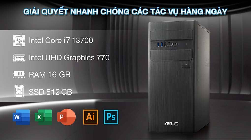 Với bộ vi xử lý thế hệ mới nhất, đồ họa rời tiên tiến và bộ nhớ DDR4 tốc độ nhanh, PC Asus S500TE-713700026W là chiếc PC gia đình có thể thực hiện các tác vụ hàng ngày một cách ngắn gọn. Thiết kế ổ lưu trữ kép cho phép bạn truy cập các tập tin, ảnh và thư viện đa phương tiện trong vài giây, đồng thời bố trí nhiệt tiên tiến và công nghệ khử tiếng ồn AI được ra đời để tăng năng suất của bạn. ASUS S500TE còn tự hào về chất lượng xây dựng vượt trội từ trong ra ngoài, bao gồm thiết kế tụ điện hoàn toàn rắn để đảm bảo khả năng tính toán bền bỉ và đáng tin cậy trong nhiều năm.