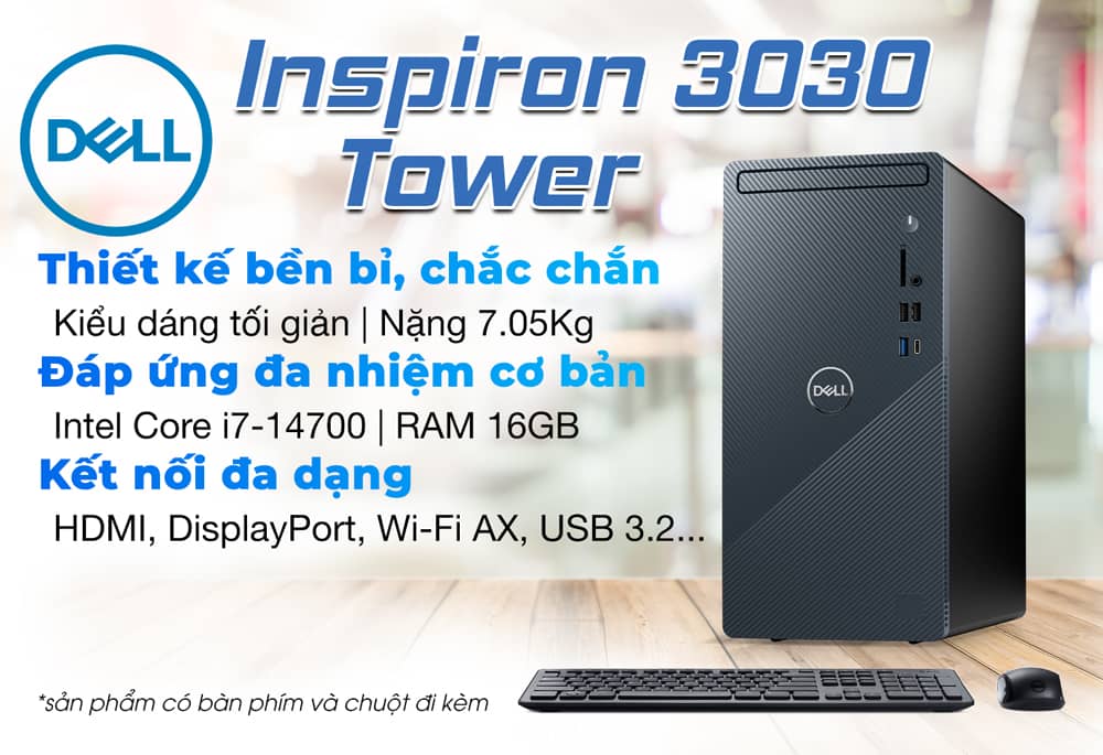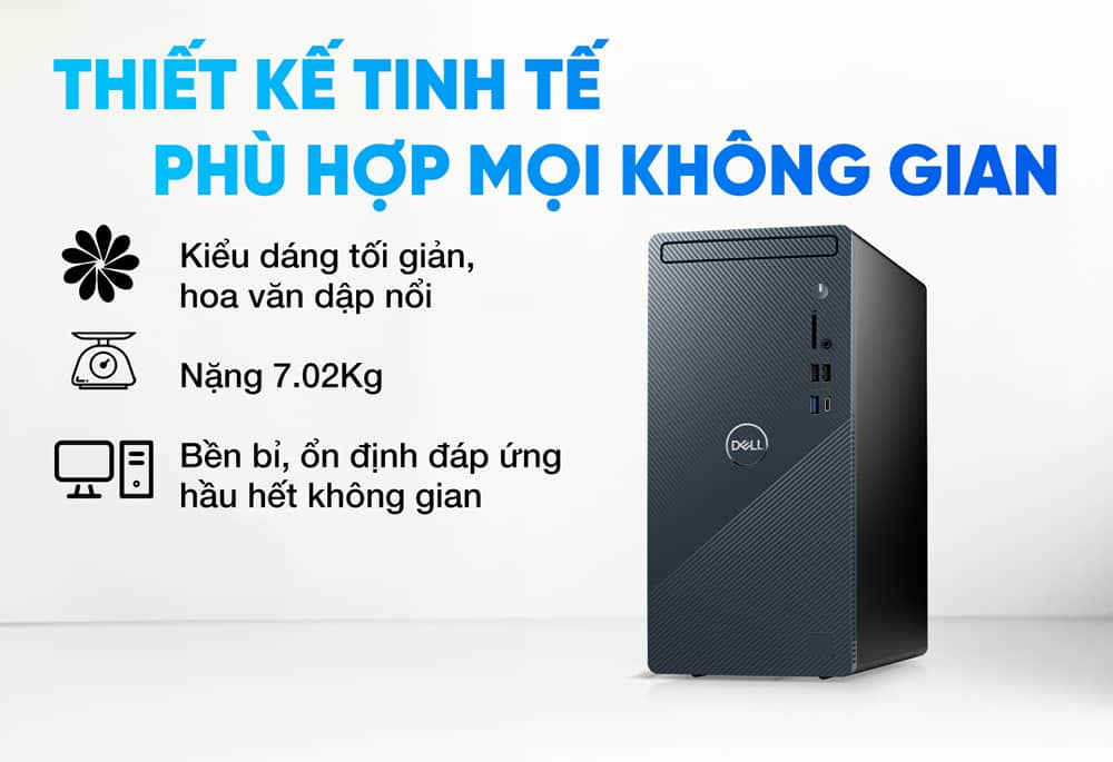 PC Dell Inspiron 3030T gói gọn các tính năng và khả năng hiệu suất tuyệt vời vào một khung máy nhỏ được thiết kế để phù hợp liền mạch với mọi không gian. Máy phải trải qua hàng loạt các bài thử nghiệm nghiêm ngặt về độ ồn, độ rung, thả rơi và sốc nhiệt để có thể đáp ứng những tiêu chuẩn khắt khe và vượt xa những tiêu chuẩn của các nhà sản xuất khác. Dòng Inspiron 3030T phù hợp với hầu hết mọi nơi trong nhà bạn mà không làm giảm hiệu suất.
