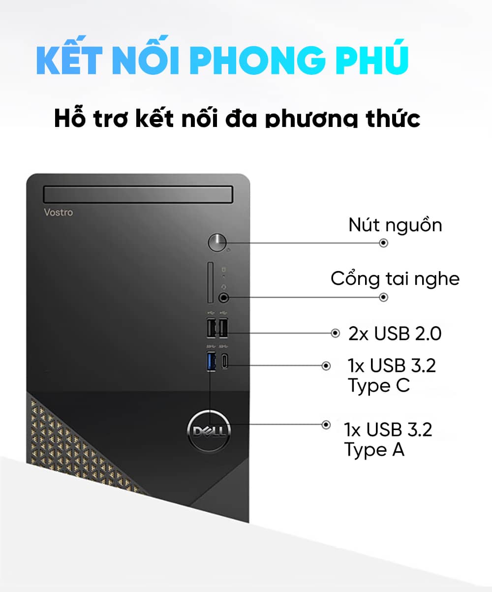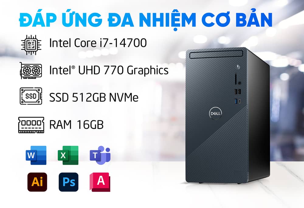 Hơn nữa, vì Máy tính để bàn nhỏ Inspiron có thể hỗ trợ bộ nhớ lên tới 64GB DDR5 nên bạn có khả năng mở rộng để bổ sung thêm bộ nhớ gồm 1 khe chờ M.2 NVMe và 1 khe chờ SATA 3 HDD/SSD cho nhu cầu tính toán trong tương lai. Để dễ dàng truy cập và lưu trữ tất cả các tệp, ảnh và video, Inspiron Small Desktop có tùy chọn nâng cấp lên tới 1TB SSD, 2TB HDD 3.5".