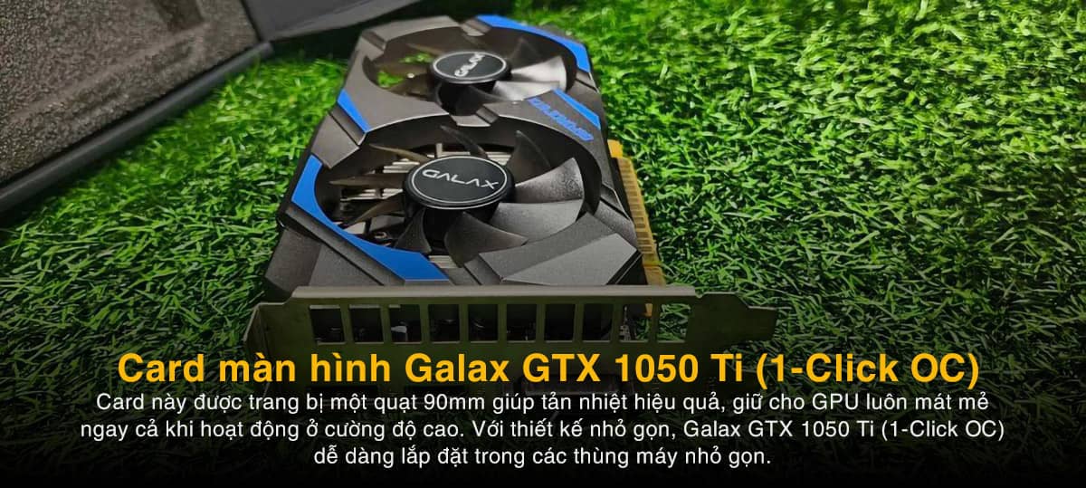 Card màn hình Galax GTX 1050 Ti (1-Click OC) là một lựa chọn tuyệt vời cho những game thủ muốn có hiệu năng tốt mà không cần đầu tư quá nhiều. Với bộ nhớ 4GB GDDR5 và băng thông 128-bit, card này cung cấp khả năng xử lý đồ họa mượt mà cho các tựa game phổ biến như LOL, Fifa Online và CS:GO ở thiết lập trung bình hoặc cao.