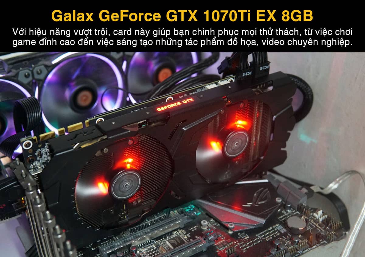 GALAX GTX 1070 Ti EX là một ví dụ tuyệt vời về một card đồ họa đơn giản, được thiết kế tốt, đáp ứng nhu cầu cơ bản của game thủ: làm mát tốt và hiệu suất tuyệt vời. Card có vẻ ngoài đơn giản đủ để xây dựng theo phong cách tối giản nhưng vẫn có cảm giác mạnh mẽ, đậm chất game thủ khi kết hợp với các thành phần phù hợp. Dòng EX của GALAX có lớp vỏ làm mát bằng kim loại màu đen và tấm ốp lưng. Ngoại hình khá lấy cảm hứng từ công nghệ và có quạt kép để làm mát.