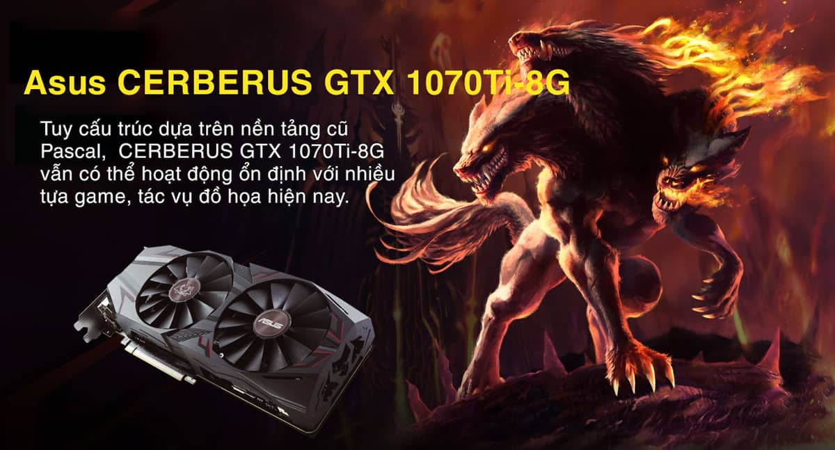 Ra mắt vào năm 2018, Asus CERBERUS GTX 1070Ti-8G từng là một trong những card đồ họa tầm trung được game thủ vô cùng yêu thích. Với kiến trúc Pascal mạnh mẽ của NVIDIA và hiệu năng vượt trội, card này đã đáp ứng tốt nhu cầu chơi game ở độ phân giải cao và cài đặt đồ họa tối đa thời bấy giờ.