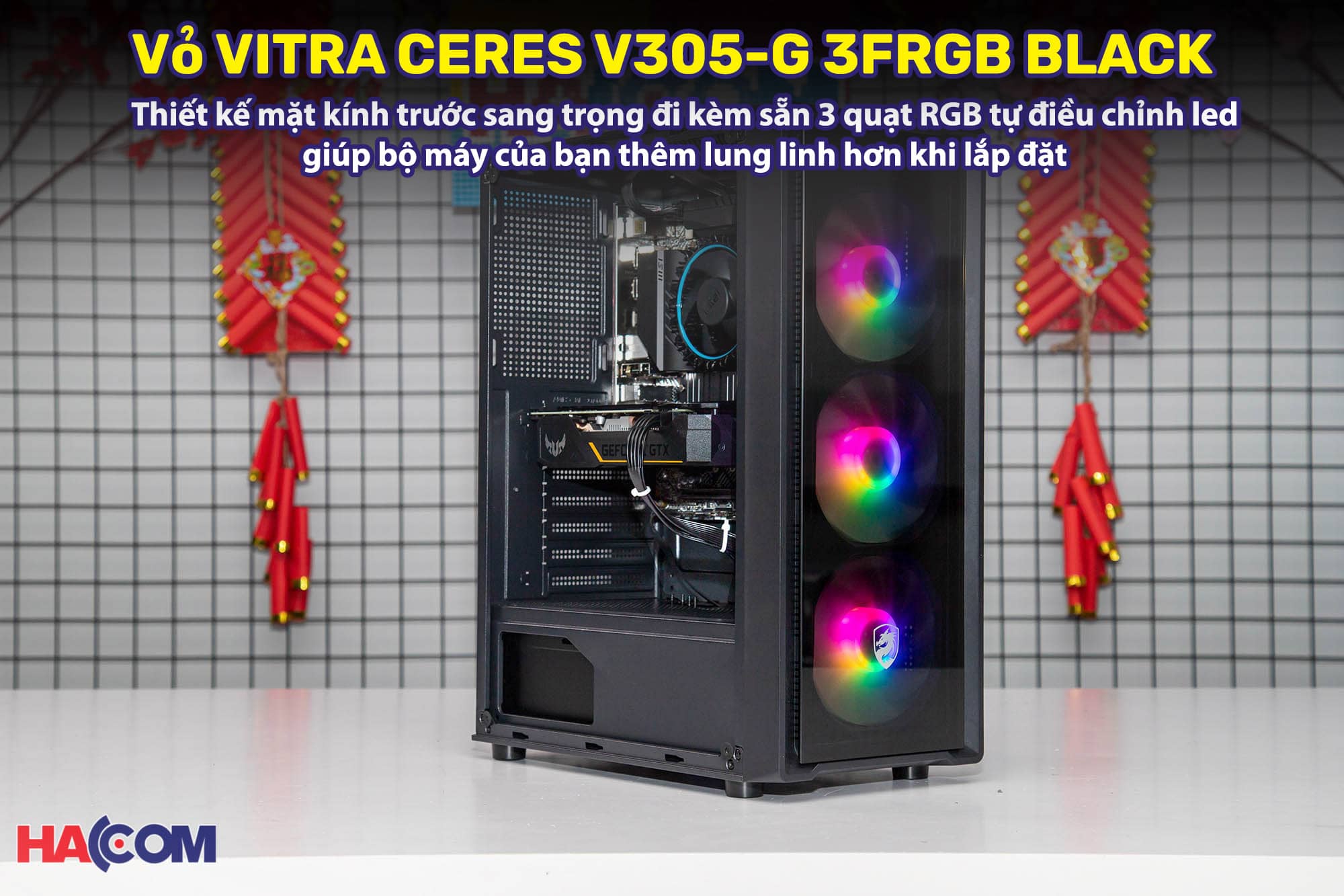 Vitra CERES V305-G 3FRGB kèm sẵn theo 3Fan RGB là thùng vỏ máy với thiết kế mới.