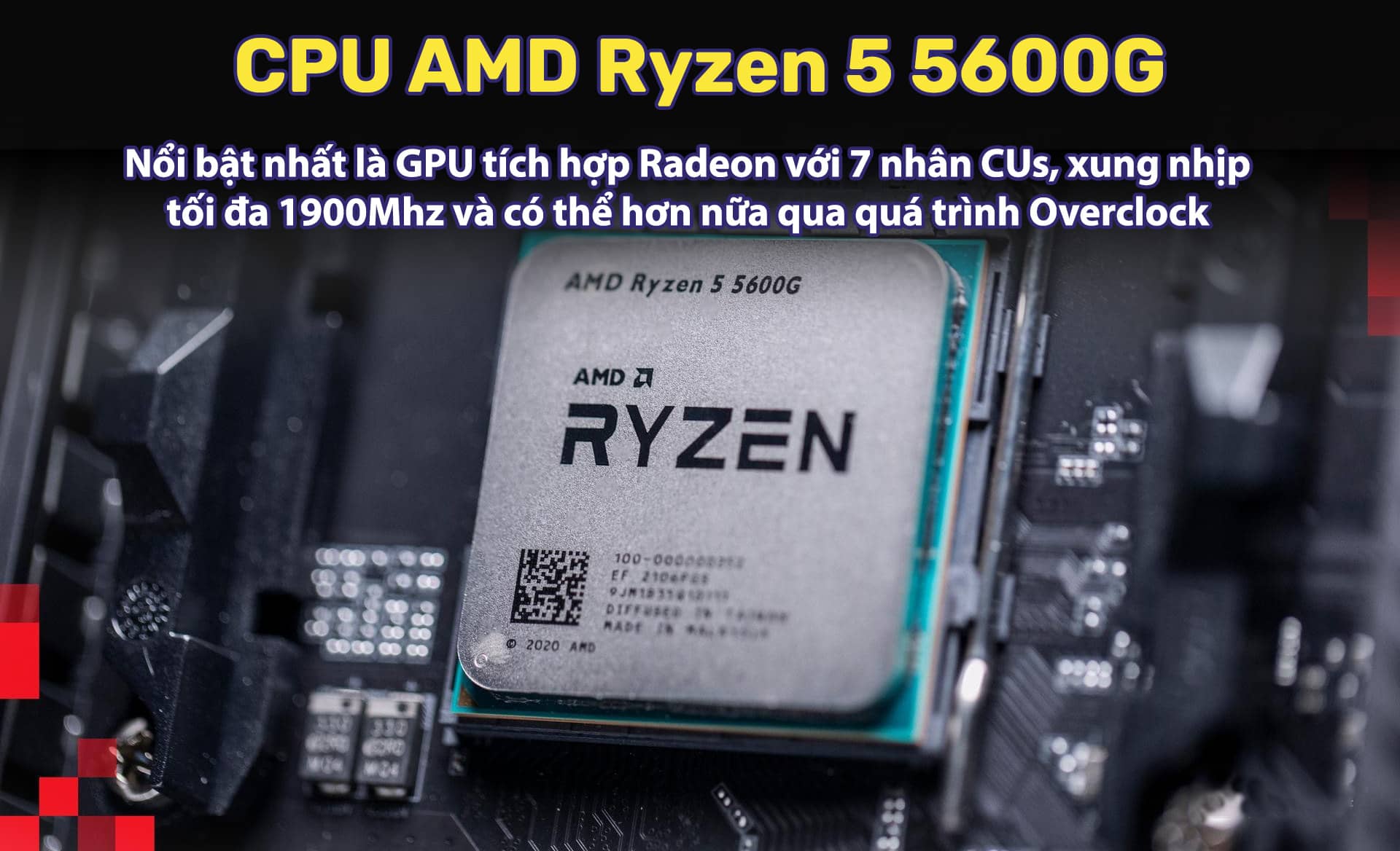 CPU AMD Ryzen 5 5600G sở hữu 6 nhân và 12 luồng giống với thế hệ cũ tuy nhiên sức mạnh mỗi nhân đã mạnh hơn rất nhiều. Xung nhịp cơ bản đạt 3.9Ghz và tối đa lên đến 4.4Ghz. Nếu có một chút kiến thức về phần cứng và Overclocking, bạn hoàn toàn có thể đẩy sức mạnh này lên thêm nữa.