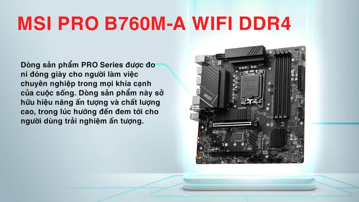Mainboard MSI PRO B760M-A WIFI DDR4 là một lựa chọn tuyệt vời cho những ai muốn xây dựng một hệ thống máy tính mạnh mẽ và ổn định. Tích hợp Wi-Fi 6E và cổng LAN 2.5G, đảm bảo kết nối mạng nhanh chóng và ổn định. Bo mạch chủ được trang bị các tản nhiệt mở rộng và M.2 Shield Frozr, giúp duy trì hiệu suất cao và bảo vệ các linh kiện khỏi quá nhiệt1.