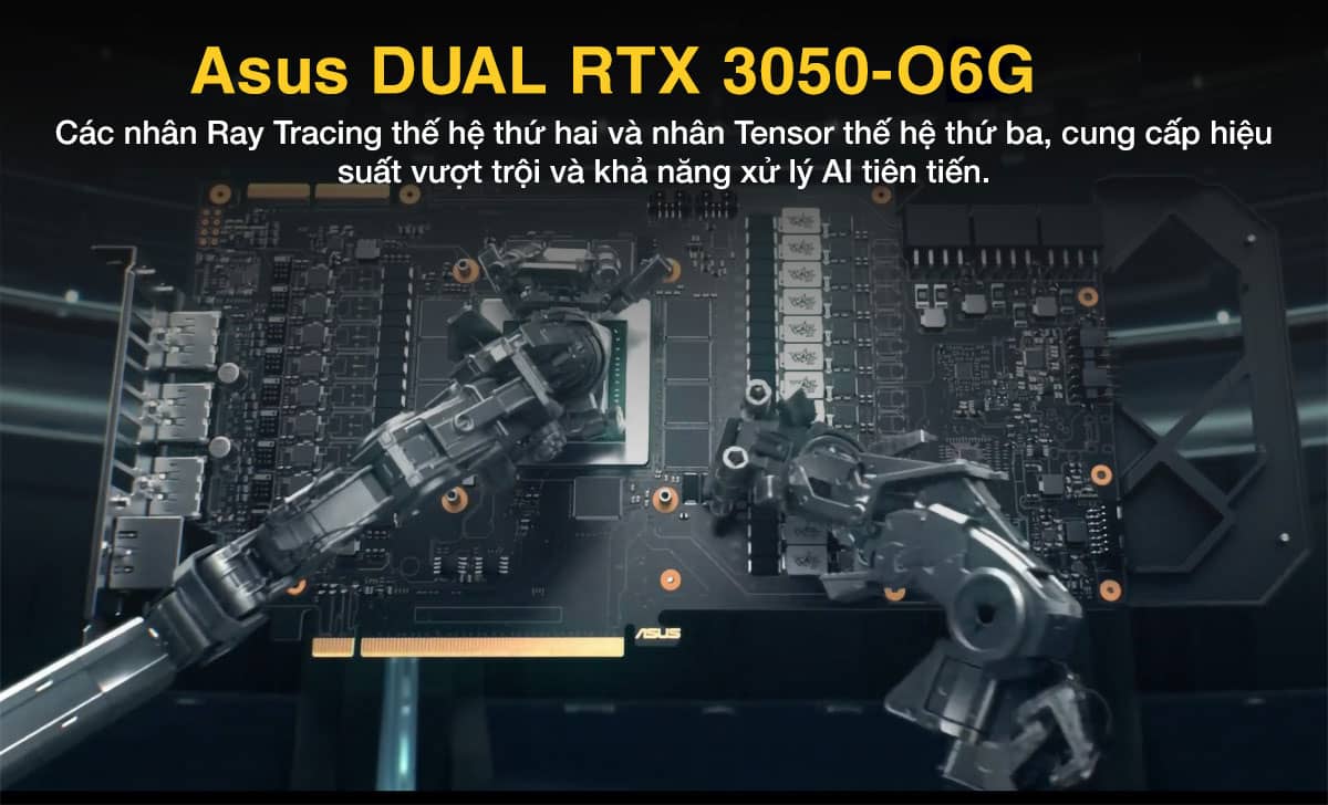ASUS Dual GeForce RTX 3050-O6G là một trong những lựa chọn hàng đầu cho game thủ và người dùng đồ họa chuyên nghiệp. Với kiến trúc NVIDIA Ampere tiên tiến, card đồ họa này mang đến hiệu năng vượt trội, giúp bạn trải nghiệm các tựa game AAA mới nhất một cách mượt mà, sống động. Hệ thống làm mát hiệu quả và thiết kế bền bỉ đảm bảo card luôn hoạt động ổn định trong thời gian dài.