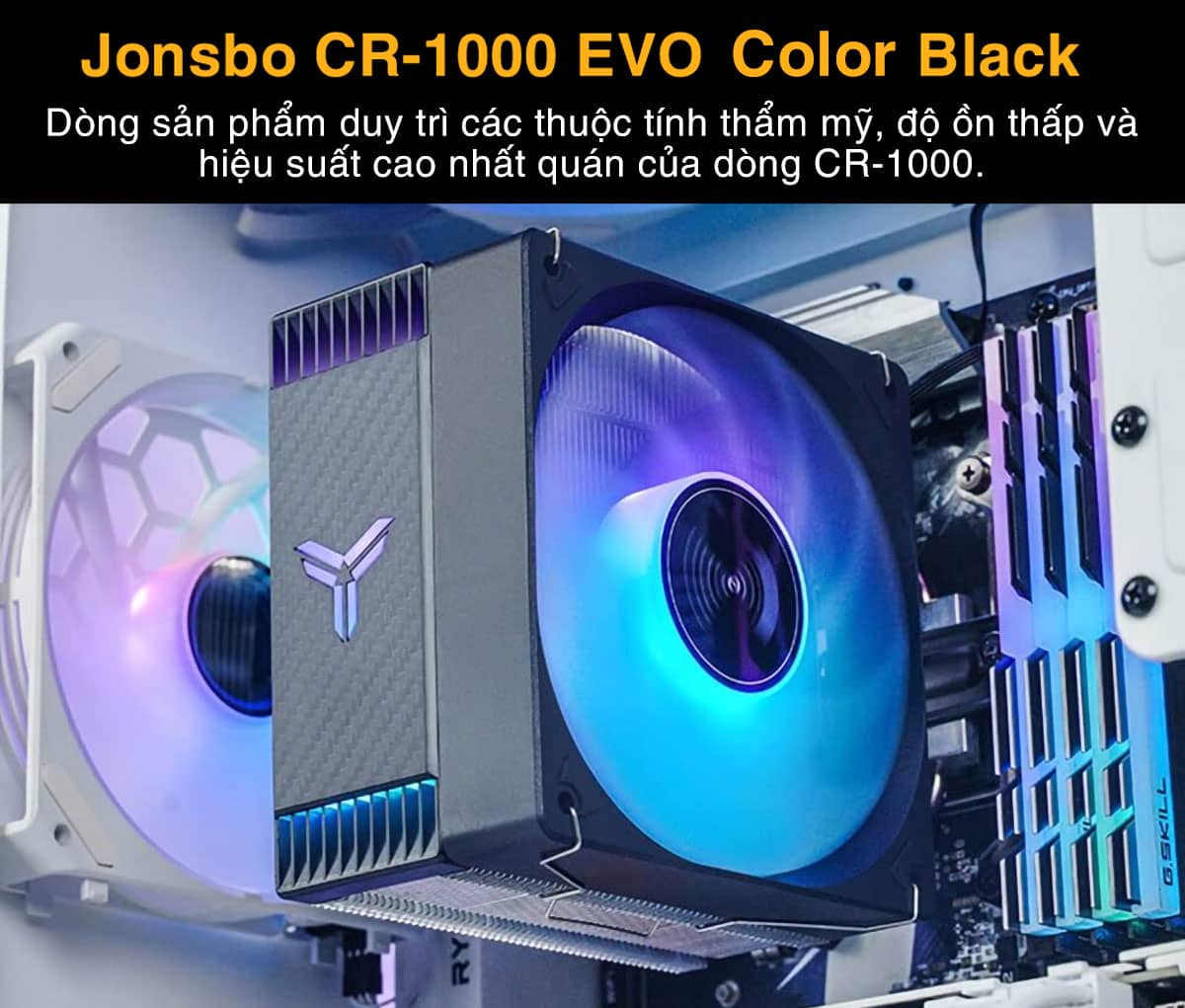 Jonsbo CR-1000 EVO Color Black được trang bị 4 ống dẫn nhiệt Φ6mm và có khả năng xử lý công suất nhiệt lên đến 220W, đảm bảo hiệu suất làm mát tối đa. Quạt tản nhiệt kích thước 120mm x 120mm x 25mm có thể điều chỉnh tốc độ từ 600 đến 1500 RPM, mang lại lưu lượng khí và áp suất khí tối ưu.