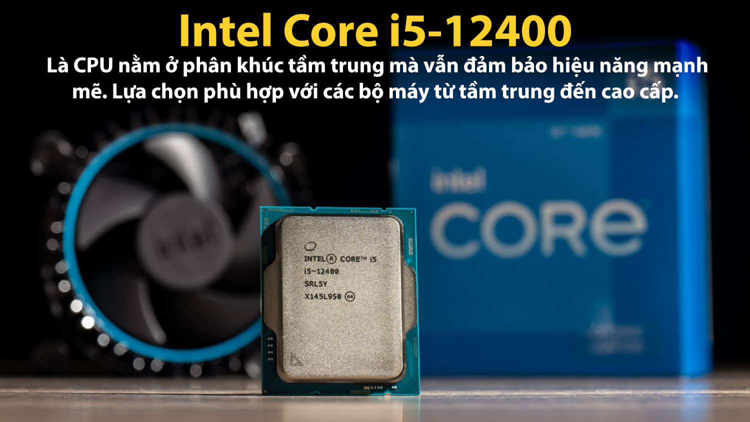 CPU Intel Core i5-12400 với xung nhịp tăng nhẹ và hiệu suất trên mỗi nhân được cải thiện. Chip vẫn có thể đáp ứng được các tác vụ phần mềm thiết kế ở mức độ vừa đủ như adobe AI, PTS, Cad 2d,...CPU sở hữu tới 6 nhân và 12 luồng cùng bộ nhớ đệm 18MB. Tính năng siêu phân luồng nâng cao hiệu suất làm việc, cải thiện hiệu quả đa nhiệm.