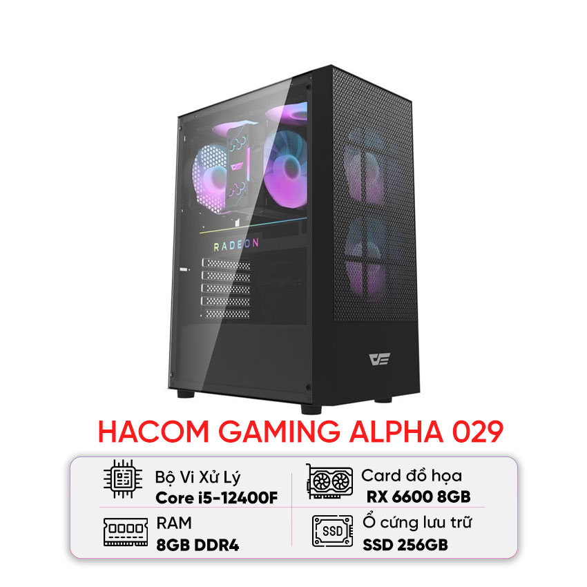 PC HACOM GAMING ALPHA 029 (I5 12400F/B760M/Wifi/8GB RAM/256GB SSD/RX 6600 8GB)