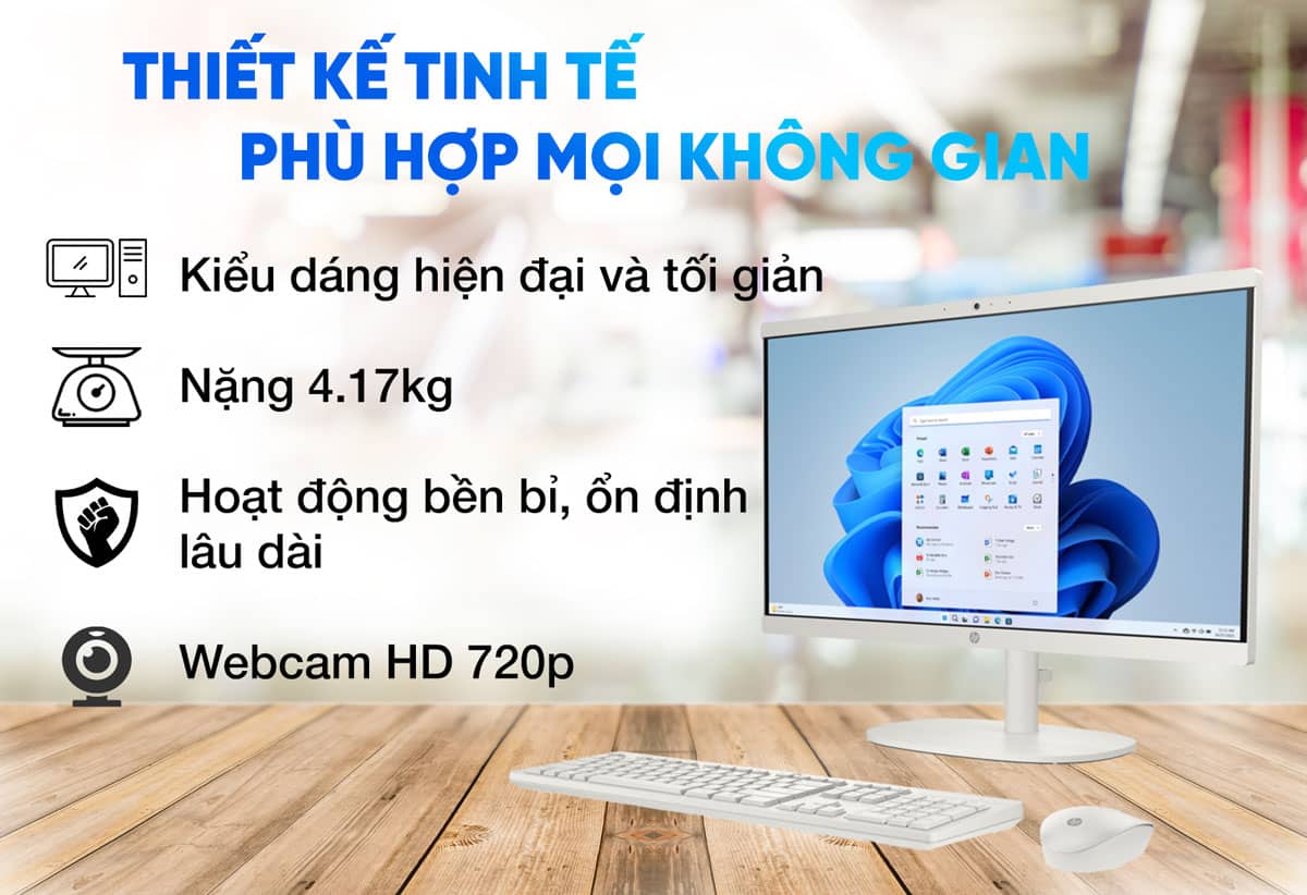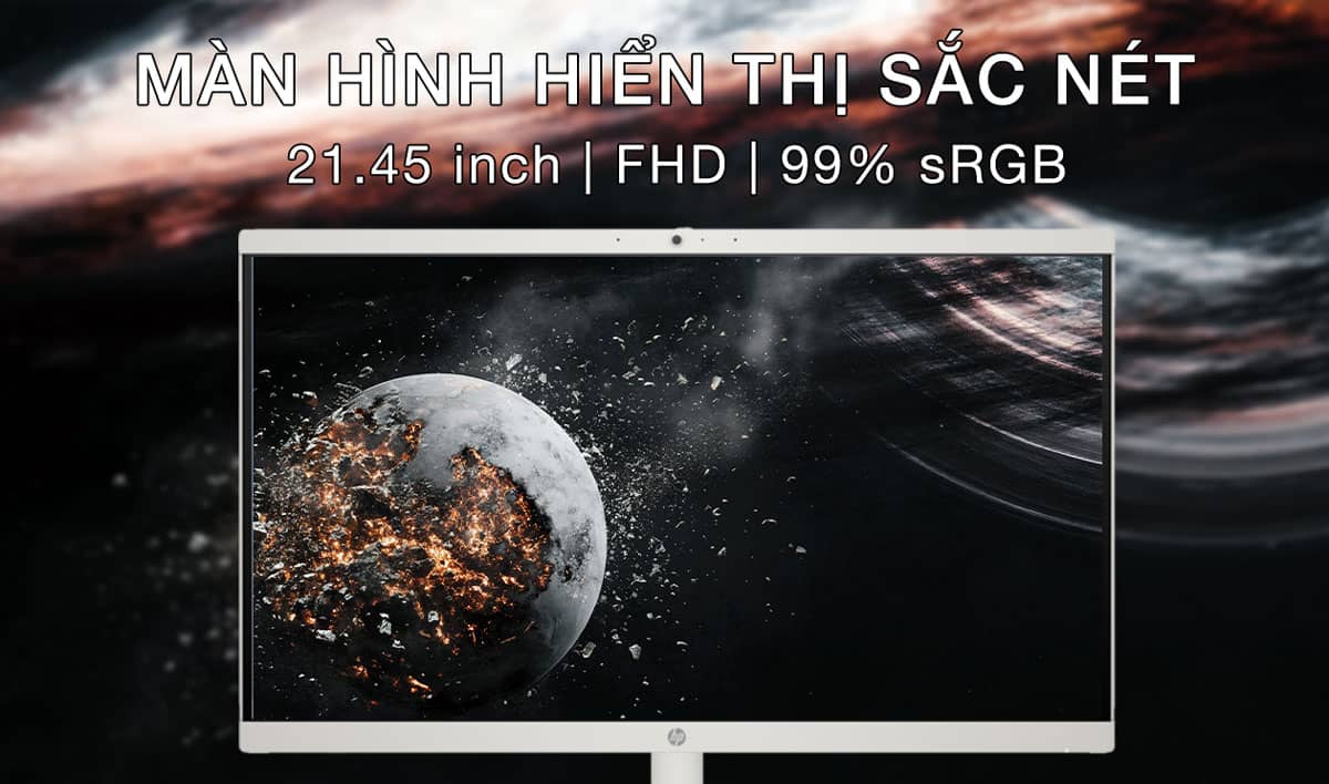 Không những thế còn tăng tính thẩm mỹ cho góc máy của người dùng trở nên hiện đại, sang trọng hơn. HP đã trang bị cho AIO 22-dg0016d cụm viền màn hình siêu mỏng. Cạnh dưới cùng được tích hợp dải loa, vô cùng gọn gàng đẹp mắt với công suất ở mức đủ dùng. Trang bị sẵn camera 720HD và Micro giúp bạn liên lạc, gọi video, tham gia họp trực tuyến với bạn bè, người thân, đồng nghiệp một cách dễ dàng qua các ứng dụng Zalo, Google Meet, Zoom,..