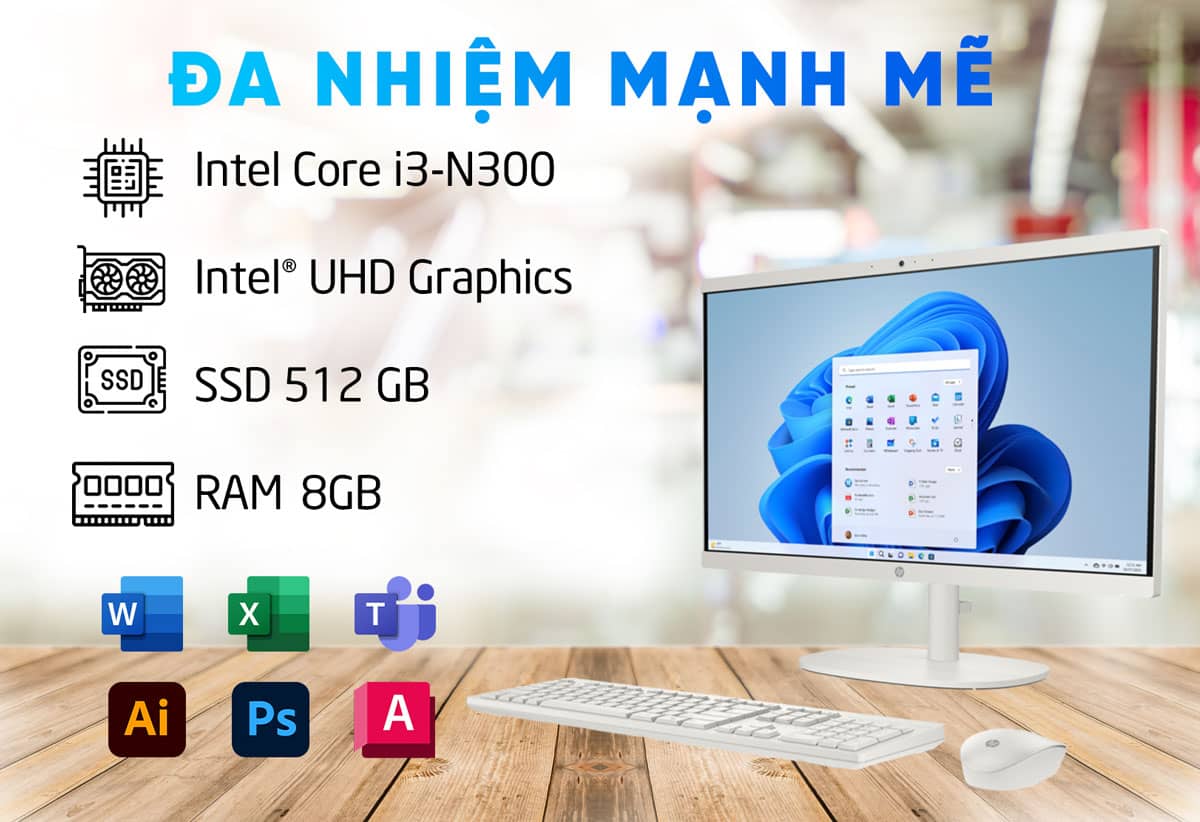 Sở hữu 8 nhân 8 luồng, CPU Intel Core i3 N300 cho khả năng xử lý đa nhiệm tối ưu hơn. Khác với các phiên bản đời trước, phiên bản đời 13th đã mang đến mới lạ trong cấu trúc. Chip có thể giải phóng xung lên tới 3.8 Ghz, đáp ứng được các phần mềm văn phòng hoặc tác vụ đồ họa cơ bản.