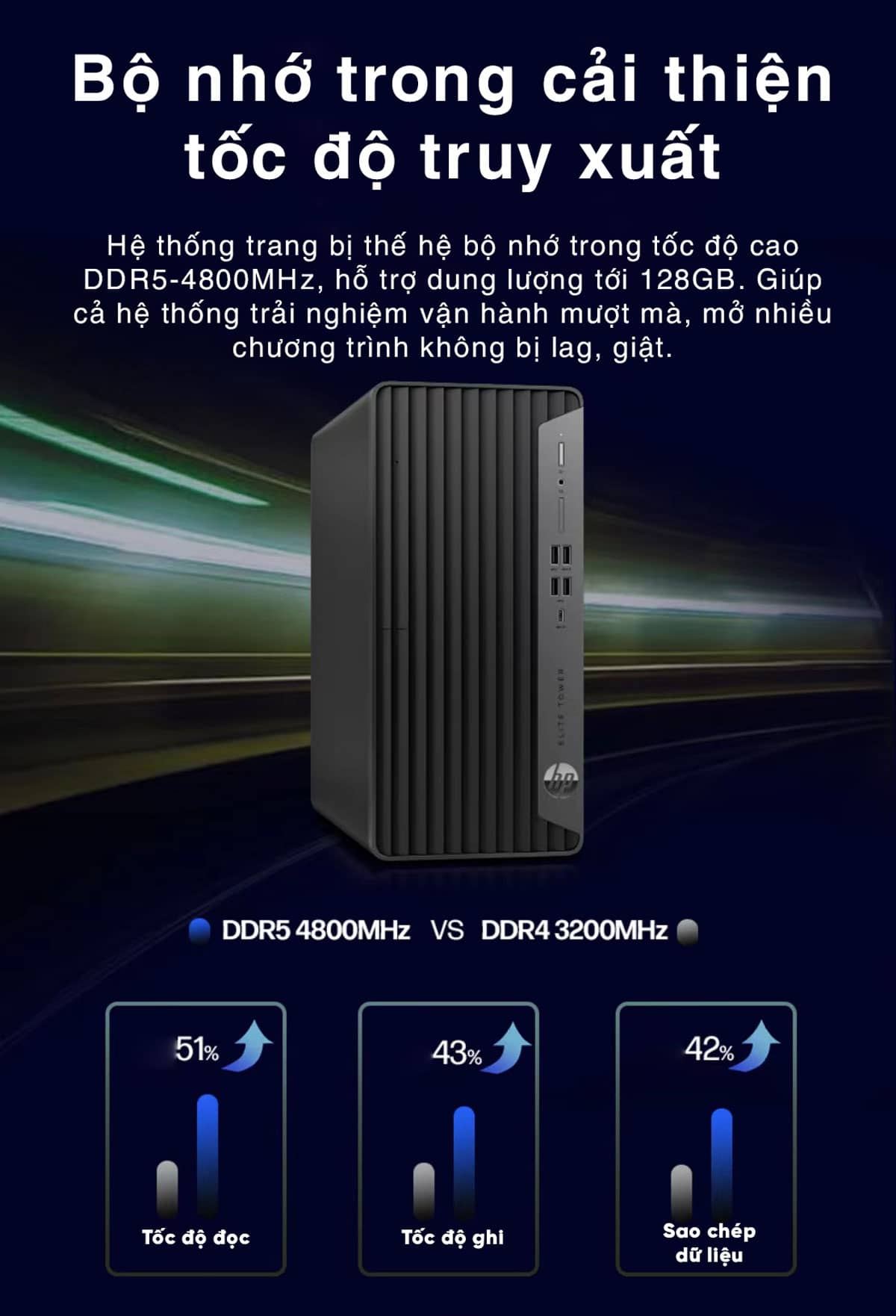 Với ổ cứng 512GB NVMe PCIe, HP 800 G9 SFF mang đến trải nghiệm người dùng tuyệt vời. Máy khởi động gần như tức thì, các ứng dụng mở nhanh chóng, và bạn có thể làm việc với nhiều tập tin lớn một cách dễ dàng. Ngoài ra, máy còn hỗ trợ thêm khe cắm để bạn có thể nâng cấp hoặc thêm ổ cứng nếu cần.