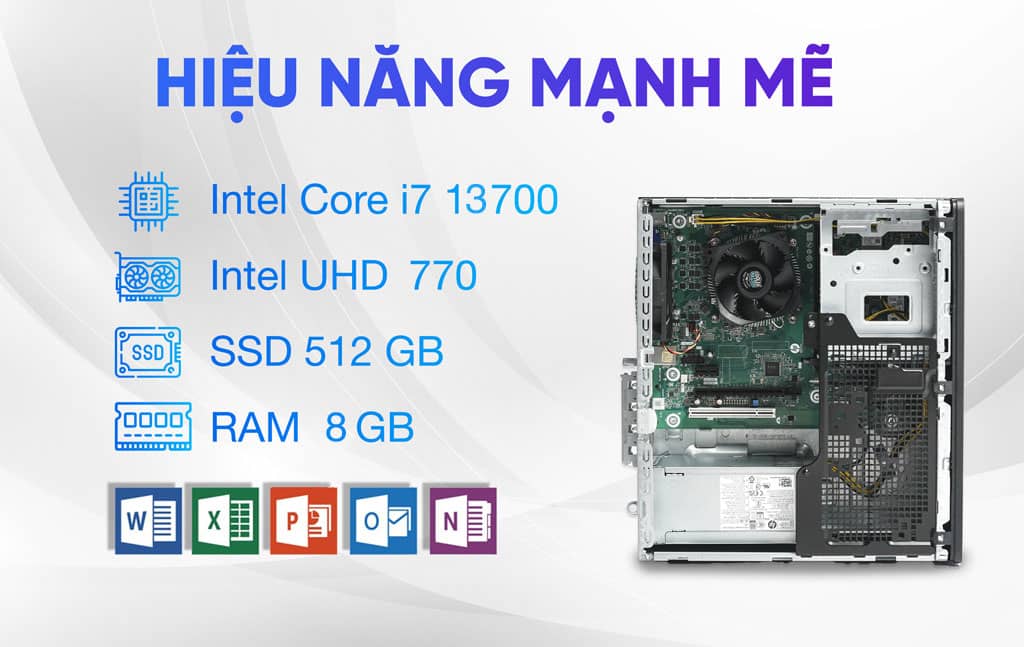 Máy trang bị sẵn 1 thanh 8GB DDR4 buss 3200, tối ưu các tác vụ mượt mà. 2 Khe ram hỗ trợ tối đa 64GB giúp cho PC sử dụng thoải mái trong các phần mềm đặc thù, hay bật nhiều tab trình duyệt. Vì công suất nguồn được tính toán cực ki chi tiết, người dùng chỉ có thể nâng cấp tối đa 1 ổ cứng HDD 3.5 inch và 1 khe SSD m.2 NVME.