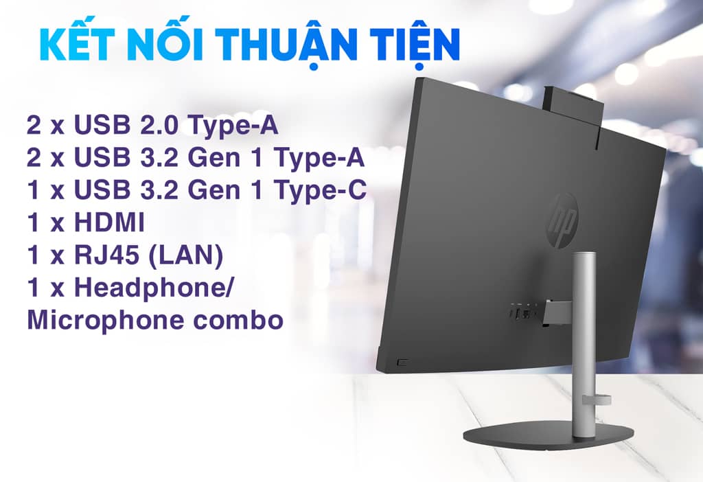 HP All in One ProOne 240 G10 được hỗ trợ bởi nhiều cổng kết nối các thiết bị ngoại vi như phím chuột, usb,.. Hay sao lưu dữ liệu một cách dễ dàng ngay phía sau màn hình. Hoặc chúng ta có thể mở rộng phạm vi hiển thị bằng cách kết nối với màn hình phụ thông qua cổng HDMI. Việc kết nối trực tiếp từ cổng LAN loại bỏ những hạn chế từ kết nối Wifi tạo ra. Xử lý công việc luôn luôn ổn định nhất.