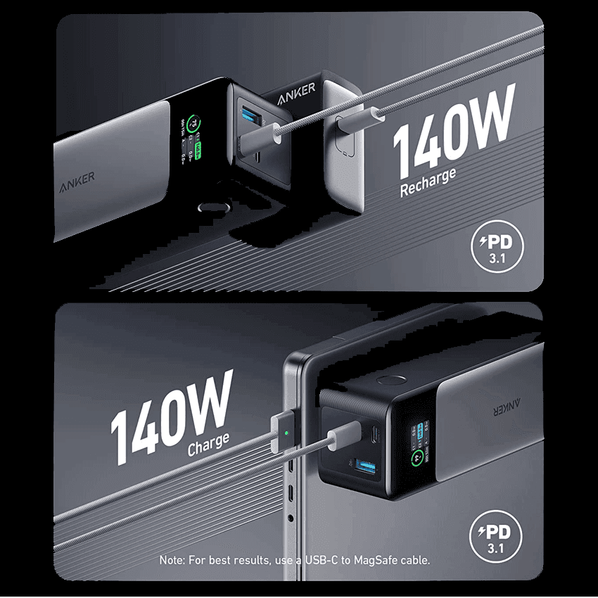 Được trang bị công nghệ Power Delivery 3.1 mới nhất và công nghệ hai chiều để nhanh chóng sạc lại bộ sạc di động hoặc có được mức sạc cực mạnh 140W