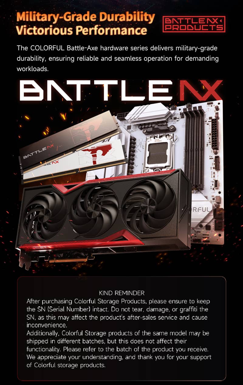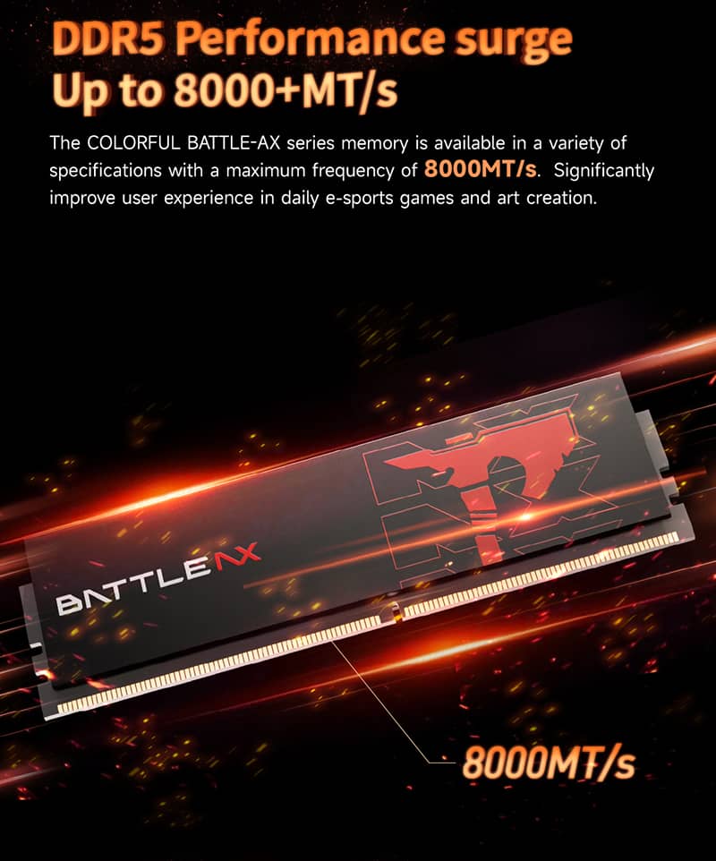 RAM máy tính DDR5 Colorful Battle AX PureOC là dòng RAM thế hệ mới hướng tới người dùng game thủ, sáng tạo nội dung và các hệ thống hiệu năng cao. Sản phẩm nổi bật với các đặc điểm sau: