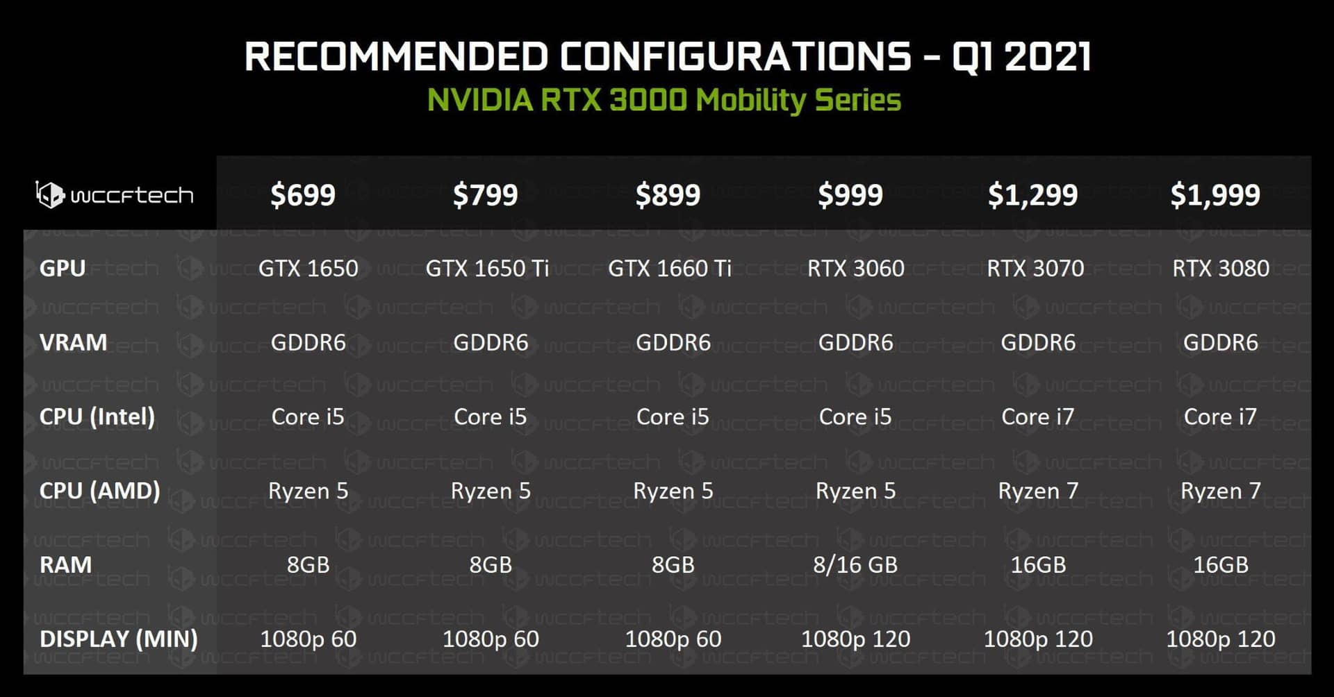 RTX 3000 trên laptop đã lộ diện gần như hoàn toàn với các phiên bản RTX 3060, 3070 và 3080 Mobility. Nvidia sẽ công bố chính thức tại CES 2021 sắp diễn ra và những chiếc laptop dùng GPU Ampere cũng sẽ ra mắt ngay sau đó.