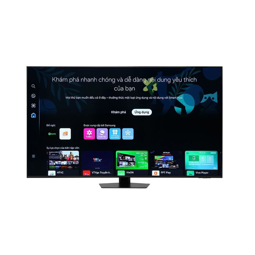 Hệ điều hành Tizen mở ra kho ứng dụng phong phú như Netflix, YouTube, Spotify hay VieON, FPT Play, dễ dàng tìm kiếm giọng nói tiếng Việt. Multi View chia màn hình để xem đồng thời hai nguồn, hữu ích cho theo dõi thể thao song song với chat.