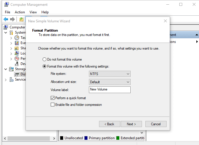 Bước 4 : Làm theo trình hướng dẫn để chỉ định kích thước ổ cứng, gán ký tự ổ đĩa cho ổ cứng, sau đó định dạng phân vùng.