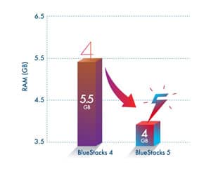 Sử dụng ít RAM hơnBlueStacks V giảm 40% sử dụng RAM so với các nền tảng giả lập khác, mang đến trải nghiệm game nhanh và mượt hơn.