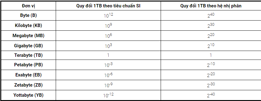 Nhưng đối với hệ điều hành windows, sử dụng hệ nhị phân thì qui ước 1TB = 1024 GB = 1 099 511 627 776 bytes. Quay trở lại với ví dụ ổ cứng 1Tb như đã nêu ở lúc đầu, nếu theo hệ nhị phân trên Window để cho ra con số chính xác dung lượng ổ cứng lúc này chúng ta sẽ lấy 1 nghìn tỷ bytes quy đổi về Gigabyte bằng cách chia cho 1024 ba lần. Và con số thu được là 931.3225746154785 GB tương đương với 940GB. Nếu bạn đang sử dụng ổ cứng 1TB hãy mở ra và kiểm tra, đây chắn chắn là con số tương đồng với hệ thống của bạn.