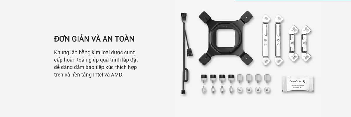 Sự bền bỉ của sản phẩm được khẳng định qua việc sử dụng vòng bi thủy lực cho quạt, giúp giảm thiểu ma sát, từ đó tăng tuổi thọ vận hành và giảm tiếng ồn cơ khí. Bên cạnh đó, Deepcool cũng rất chú trọng đến trải nghiệm người dùng khi cung cấp bộ ngàm lắp đặt tối giản nhưng cực kỳ chắc chắn, hỗ trợ tốt cho cả nền tảng Intel và AMD (bao gồm cả các socket mới nhất). Dù bạn là một chuyên gia lắp máy hay chỉ là người mới bắt đầu tập tành "build" PC, bạn cũng có thể hoàn thành việc lắp đặt bộ tản này một cách tự tin và an toàn chỉ với vài thao tác cơ bản.