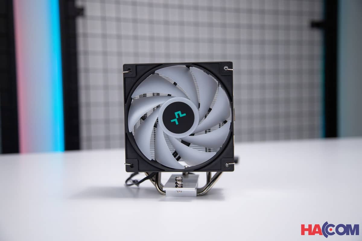 Sức mạnh của AG400 ARGB còn đến từ chiếc quạt tản nhiệt 120mm hiệu suất cao với tính năng PWM, dải tốc độ linh hoạt từ 500 đến 2000 RPM, quạt có khả năng tự động điều chỉnh tốc độ quay dựa trên nhiệt độ thực tế của hệ thống. Ở các tác vụ văn phòng nhẹ nhàng, quạt quay ở mức thấp giúp dàn máy hoạt động tĩnh lặng tuyệt đối. Tuy nhiên, khi hệ thống nóng lên, sức mạnh của lưu lượng gió 75.89 CFM và áp suất tĩnh 2.53 mmAq sẽ được phát huy tối đa, luân chuyển luồng khí nóng ra ngoài một cách chớp nhoáng mà vẫn giữ được độ ồn cực thấp dưới 31.6 dB, không gây ảnh hưởng đến trải nghiệm âm thanh của người dùng.