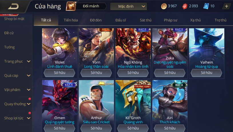 Tặng nick liên quân VIP uy tín full trang phục cho anh nào thích màu mè, đẹp mắt hoặc muốn test trang phục.