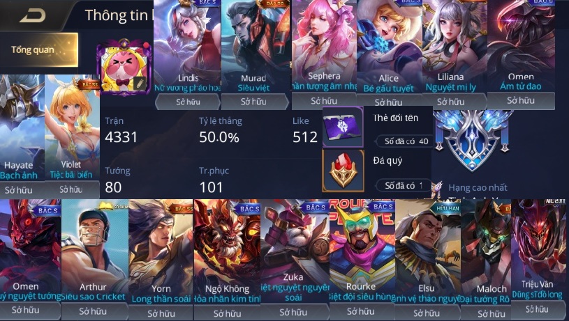 Dưới đây là một số nick Liên Quân thử nghiệm với Full tướng và bảng ngọc. Đây là các nick Liên quân được cung cấp nhằm giúp các bạn test tướng , và bảng ngọc để lựa chọn cách chơi phù hợp với bản thân: