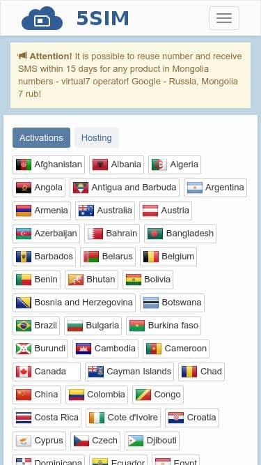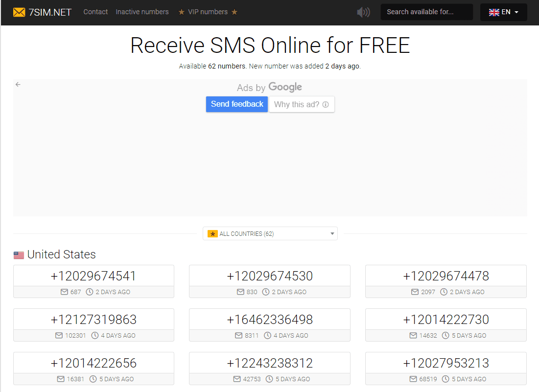 7sim.net cung cấp dịch vụ tạo số điện thoại online cho 7 quốc gia và vùng lãnh thổ (chủ yếu là Châu Âu).