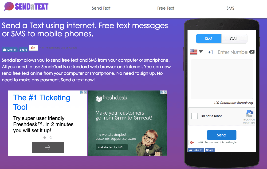 Sendatext là dịch vụ cho phép người dùng gửi tin nhắn tới một số điện thoại đang sử dụng từ một số điện thoại không có thực. Bạn sẽ không thể dùng công cụ này để kích hoạt các tài khoản trực tuyến.