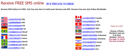 Getfreesmsnumber cung cấp nhiều số di động ảo chủ yếu từ những quốc gia châu Âu. Giao diện nhà cung cấp rất dễ dùng, bạn chỉ việc chọn một số điện thoại để đăng ký kích hoạt dịch vụ. Chỉ khoảng 1 phút sau, mã kích hoạt sẽ được gửi sms về số điện thoại bạn đăng ký và hiển thị trên trang getfreesmsnumber.com.