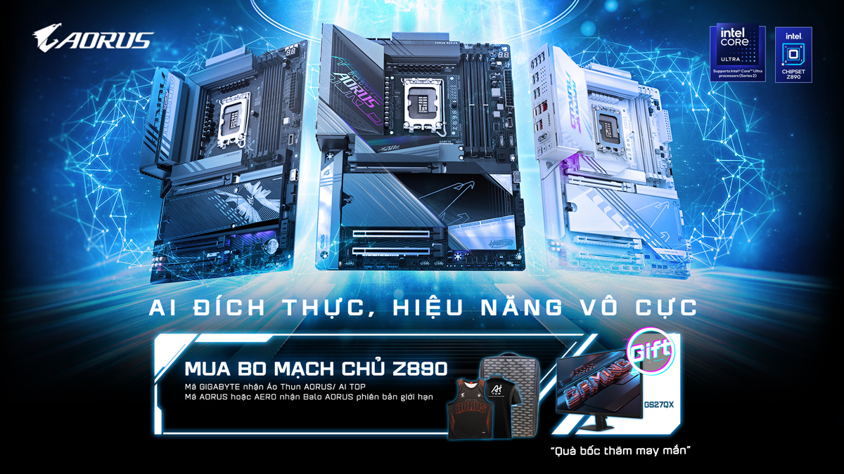 - Khách hàng khi mua Bo mạch chủ Z890 các mã GIGABYTE : Tặng Áo AI Top hoặc Áo thể thao AORUS (người dùng lựa chọn quà tặng trên landing page)