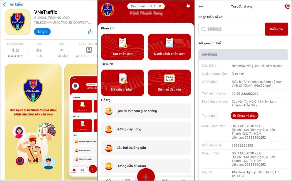 - Kiểm tra lỗi vi phạm giao thông nhanh chóng.