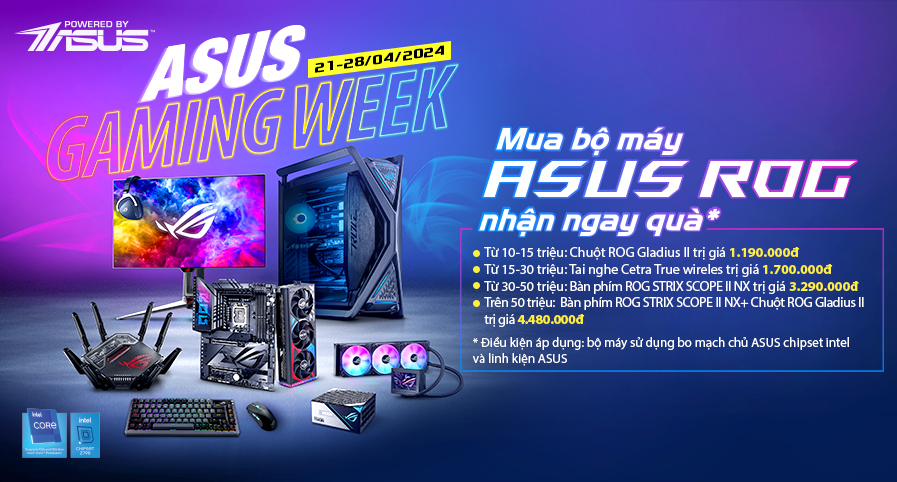 ASUS GAMING WEEK TẠI 43 THÁI HÀ: NHẬN NGAY QUÀ KHI BUILD MÁY BỘ ASUS ROG TỪ NGÀY 21/4/2024 ĐẾN 28/4/2024