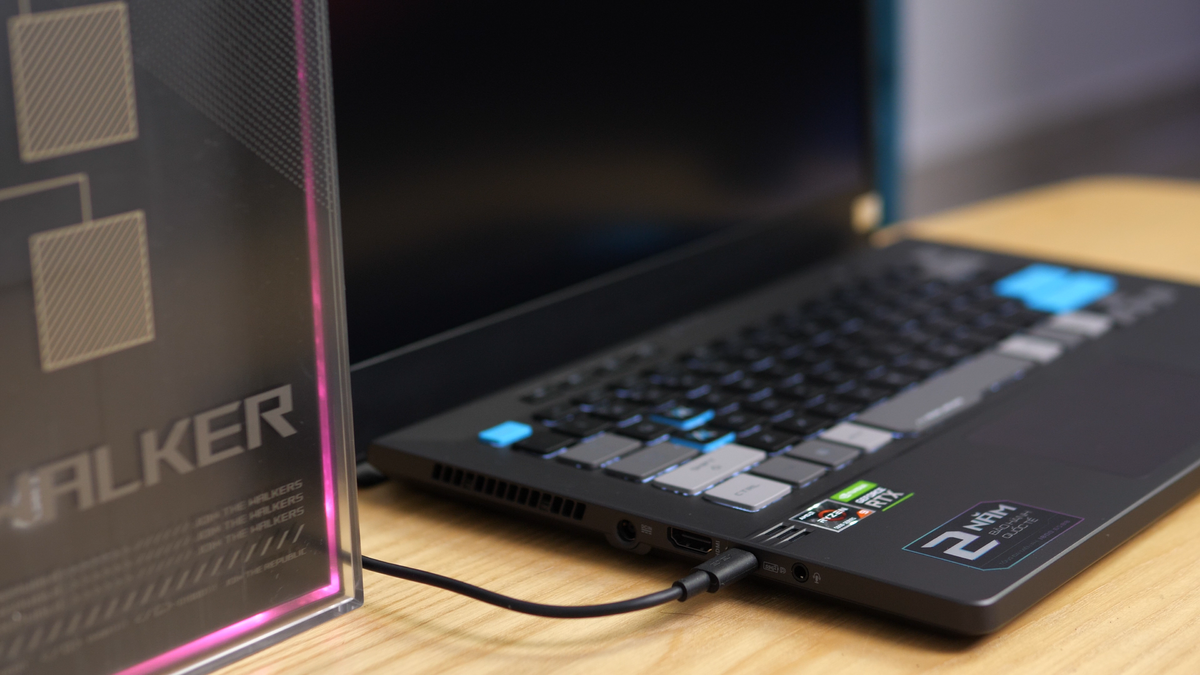 Bàn phím trên Zephyrus G14 có kích thước tiêu chuẩn, hành trình phím bấm vừa, không bị ngắn như các mẫu laptop cùng tầm giá, dù kích thước máy mỏng hơn. Trải nghiệm cho thấy bàn phím gõ êm, nhẹ nhàng, không tốn quá nhiều lực. Bàn phím này cũng đèn nền, riêng nút nguồn được tích hợp cảm biến vân tay.
