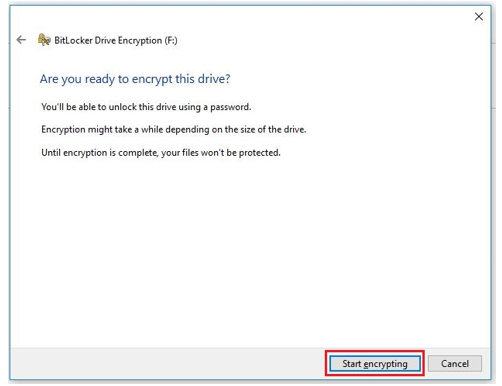 Bước 6 : Bạn đã sẵn sàng để mã hóa ổ đĩa này ? Nếu đã sẵn sàng, nhấp vào Start encrypting