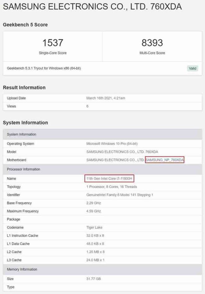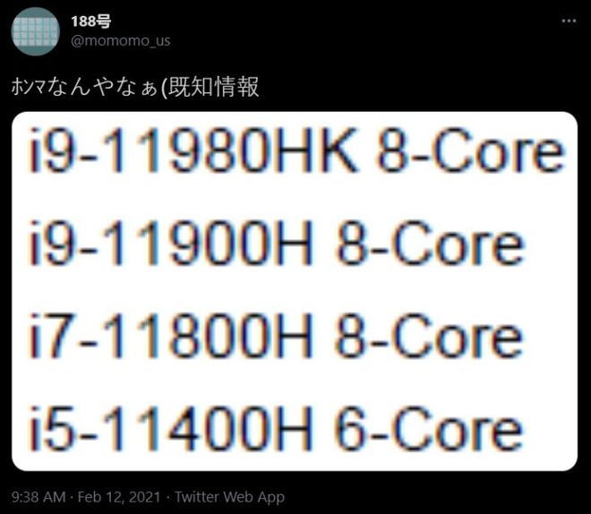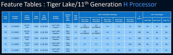 Những vi xử lý Tiger Lake-H sắp ra mắt sẽ có 2 sản phẩm 6 nhân và 3 sản phẩm có 8 nhân/16 luồng.