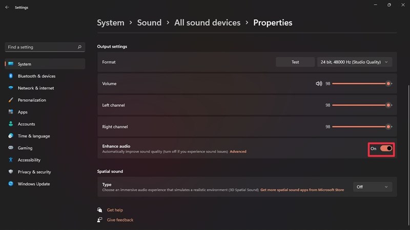 Cách bật Enchance Audio trên Windows 11