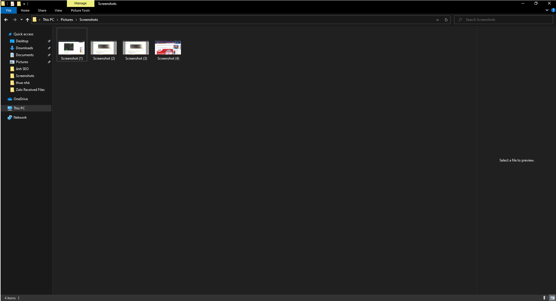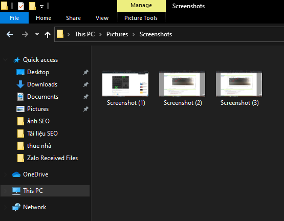Sau khi bấm xong tổ hợp phím tắt này, ảnh trên màn hình laptop của bạn sẽ được chụp lại với dấu hiện nhận biết là màn hình laptop chớp đen 1 giây rồi sáng lại ngay lập tức. Bức ảnh chụp màn hình sẽ được lưu lại trong thư mục nằm trong đường dẫn : Pictures > Screenshots